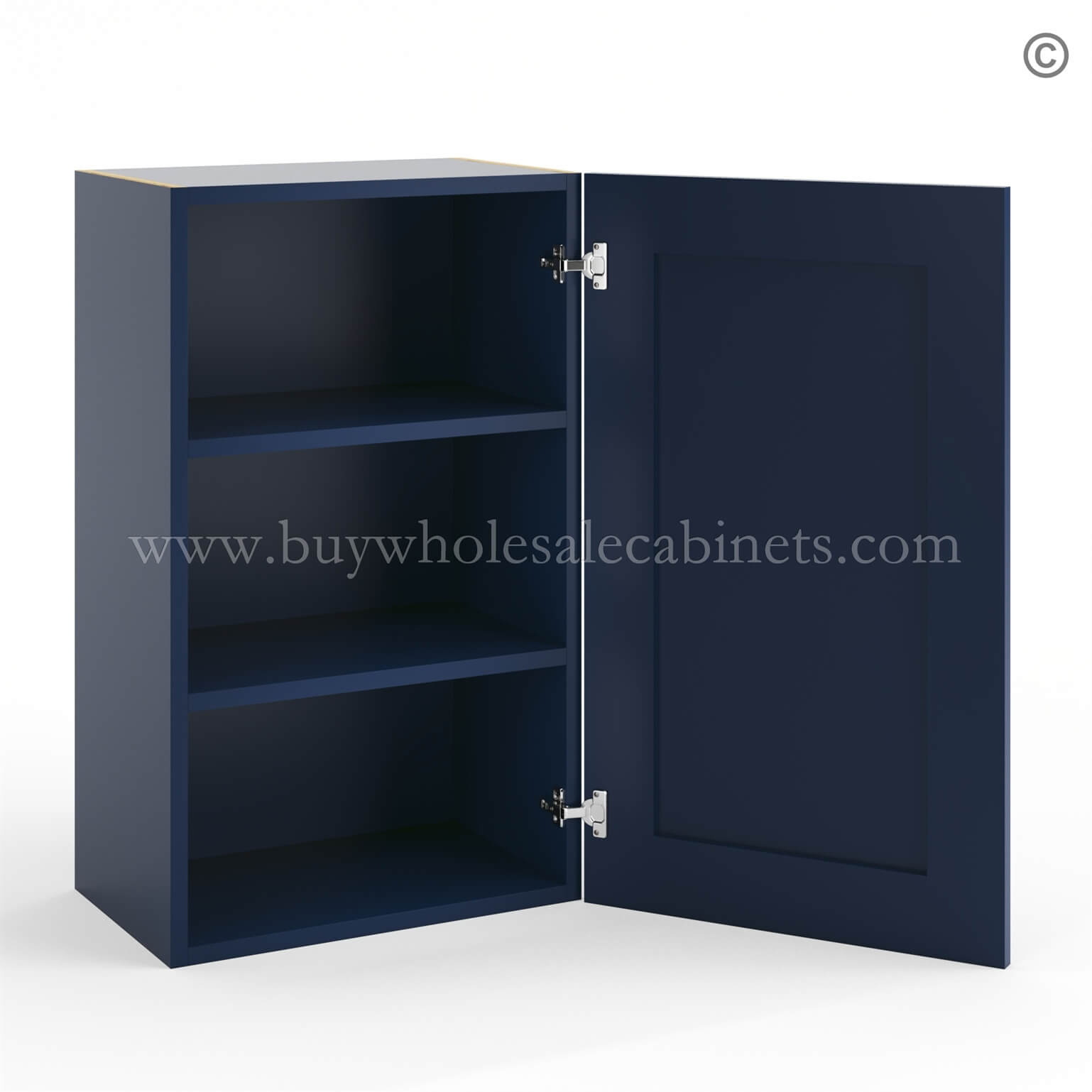 Frameless Oxford Blue 30″ Tall Deep Wall Cabinet – 1 Door 2 Shelves