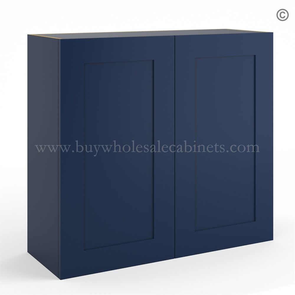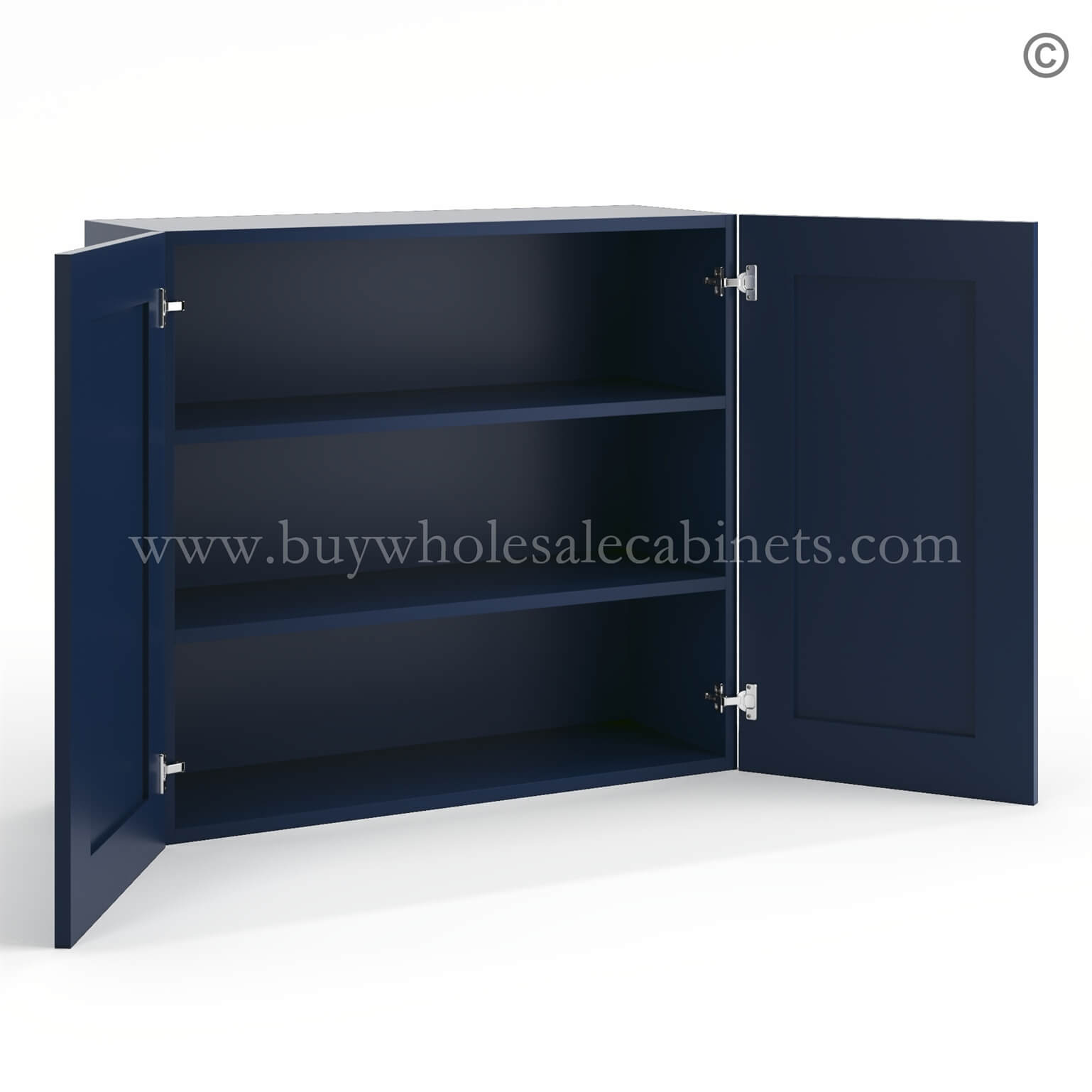 Frameless Oxford Blue 30″ Tall Wall Cabinet – 2 Doors 2 Shelves