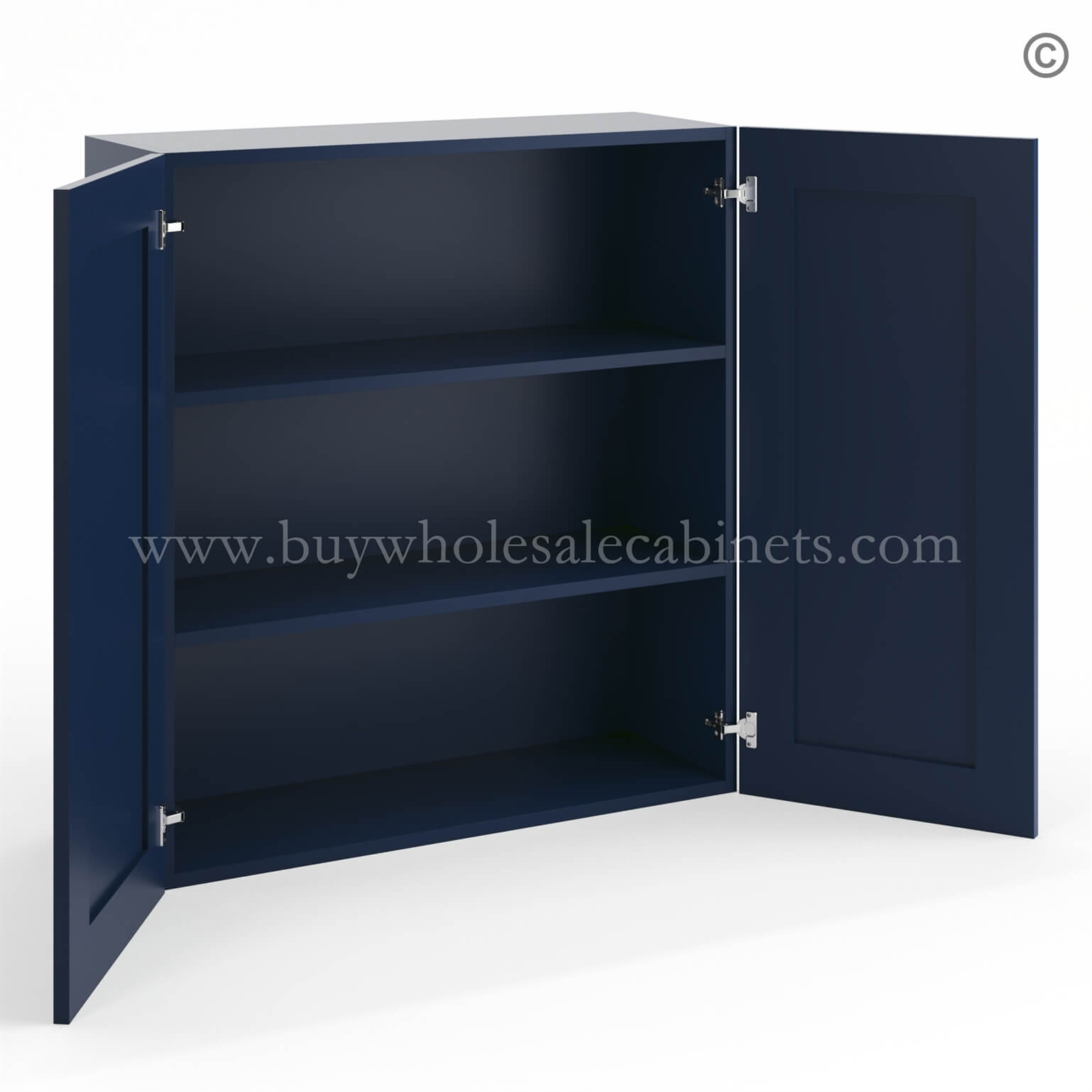 Frameless Oxford Blue 36″ Tall Wall Cabinet – 2 Doors 2 Shelves