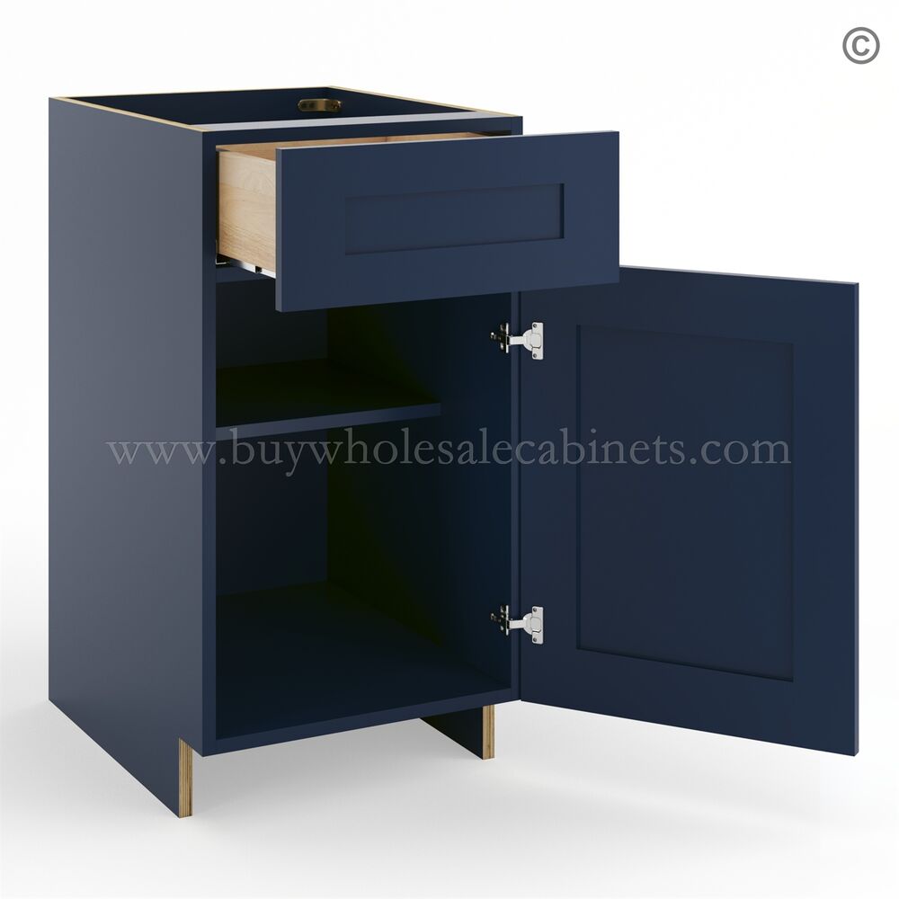 Frameless Oxford Blue Base Cabinet – 1 Drawer, 1 Door, 1 Shelf