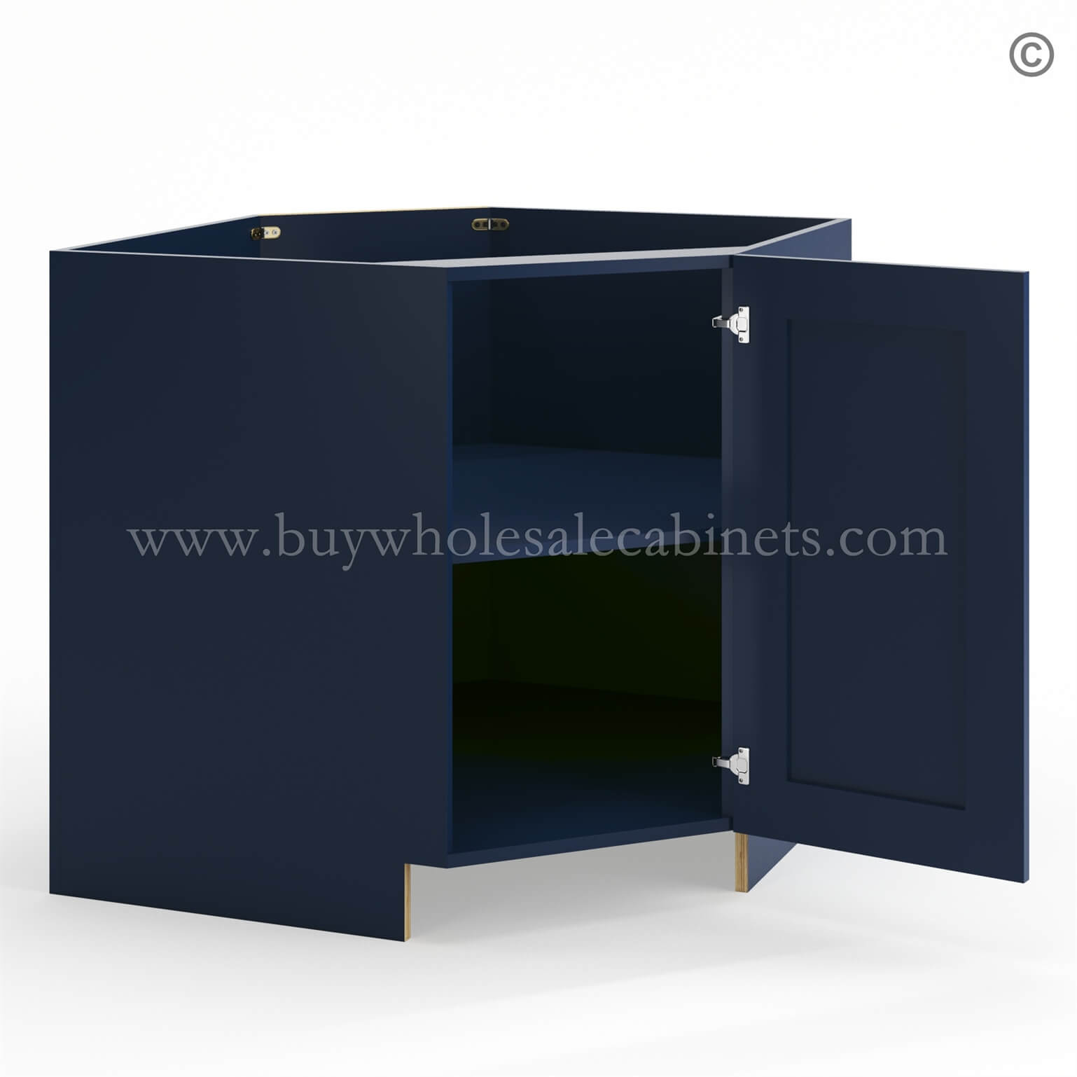 Frameless Oxford Blue Base Diagonal Cabinet 1 Door (Excludes Metal Lazy Susan Insert)