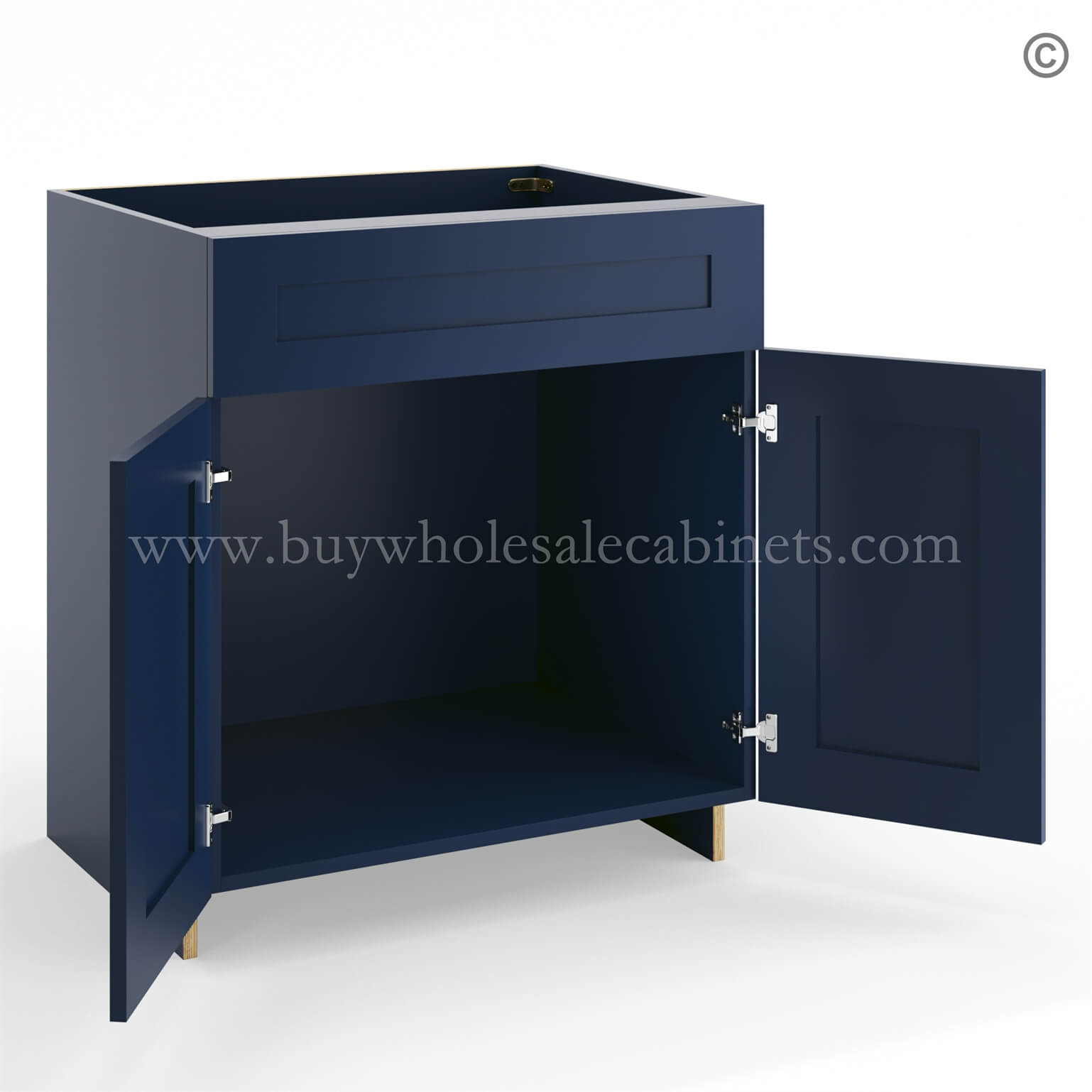 Frameless Oxford Blue Sink Base Cabinet – 2 Doors & 1 False Drawer