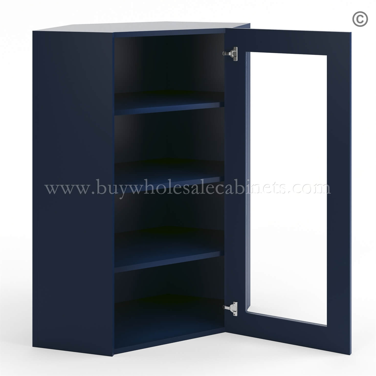 Frameless Oxford Blue Wall Diagonal Mullion Door – 1 Door 3 Shelves – No Glass