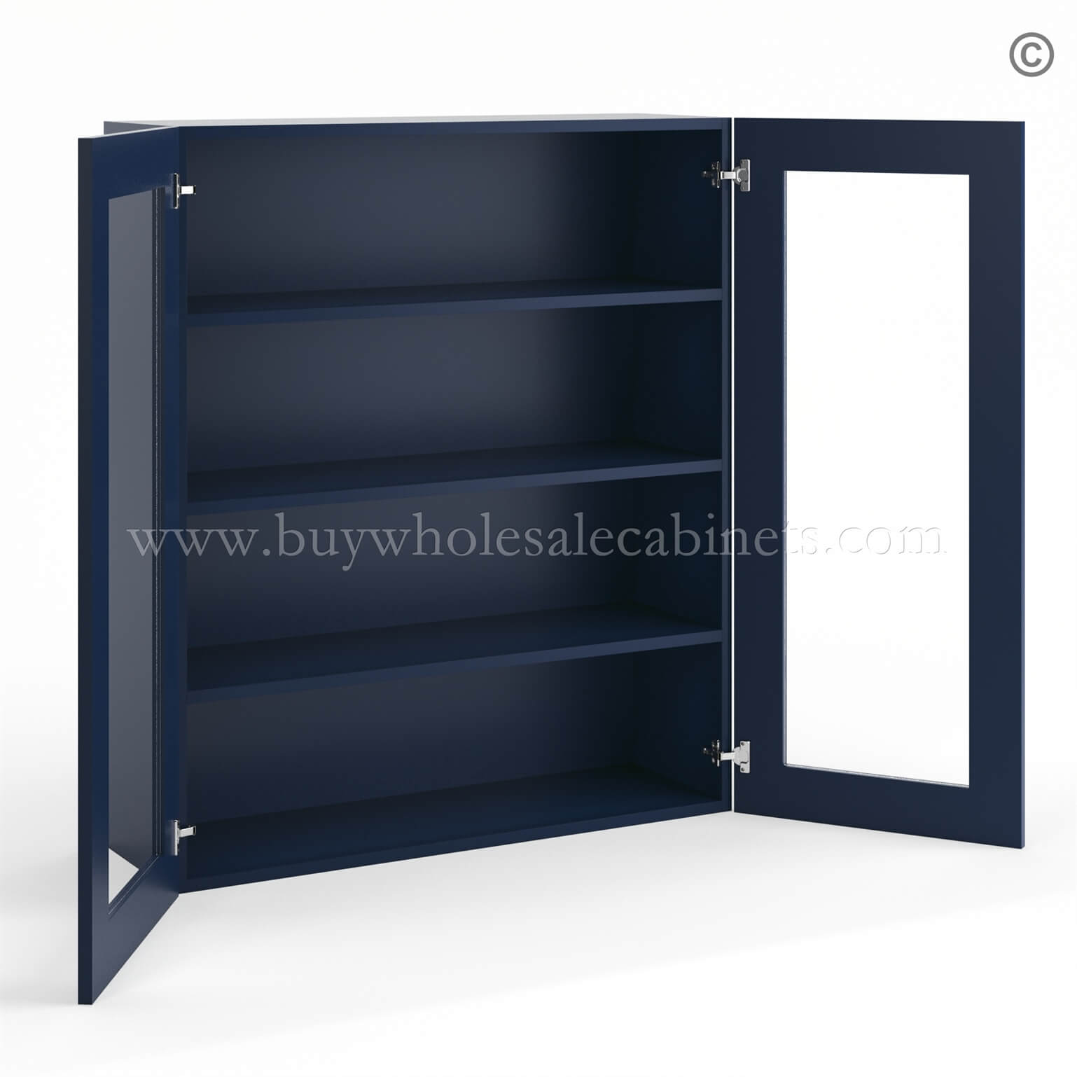 Be the first to review “Frameless Oxford Blue Wall Mullion Door 42″H – 2 Door 2 Shelves – Glass And Clips Not Included.”