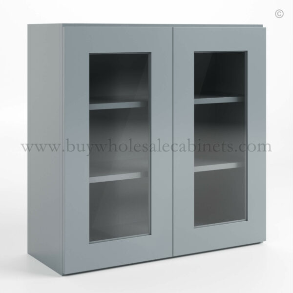 Gray Shaker 30″ H Double Door Wall Cabinet with Glass Doors