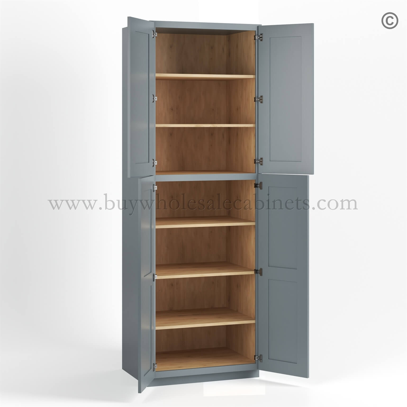 Gray Shaker 30″ W Two Double Door Utility Pantry Cabinet
