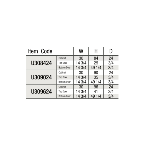 Cabinet Dimensions: 30″W x 84″H x 24″D, 30″W x 90″H x 24″D, 30″W x 96″H x 24″D