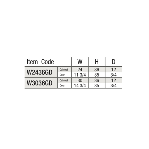 Cabinet Dimensions: 24″W x 36″H x 12″D, 30″W x 36″H x 12″D