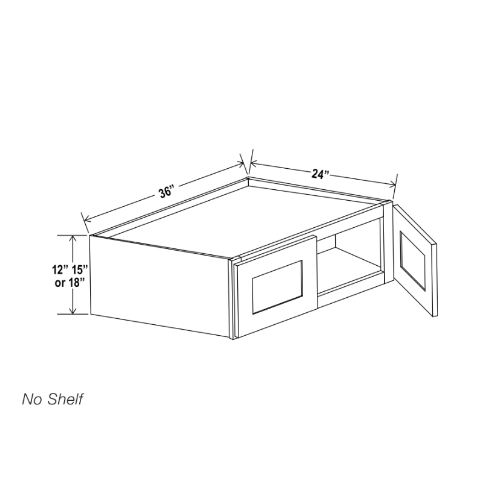 Our Gray Shaker 36 W Refrigerator Wall Cabinet 24 Deep is 36″ wide, 24″ deep, and available in 3 different heights (12″, 15″, 18″).