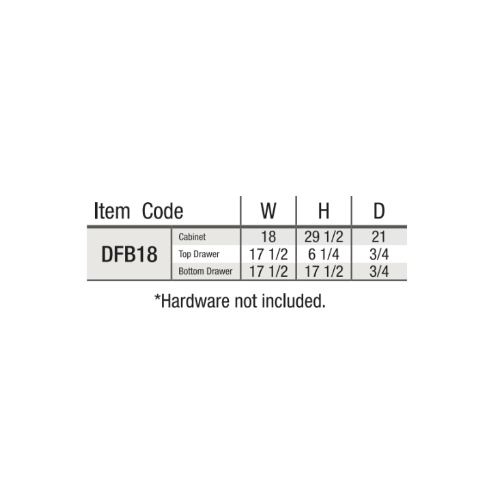 Our Gray Shaker Two Drawer Document File Base Cabinet is 18″ wide, 29.5″ tall, and 21″ deep.