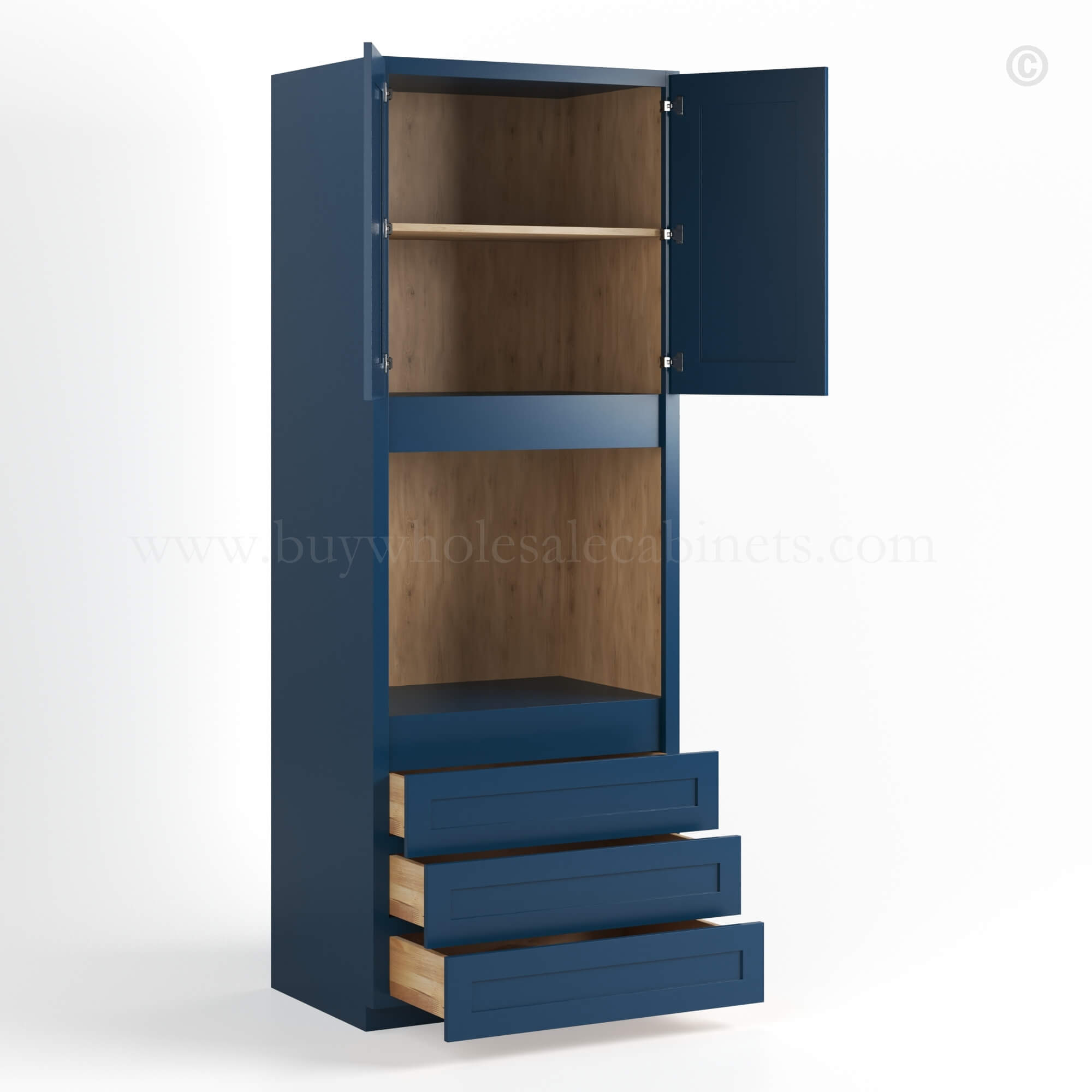 Navy Blue Shaker 33″ W Double Door Oven Pantry Cabinet with Three Drawers