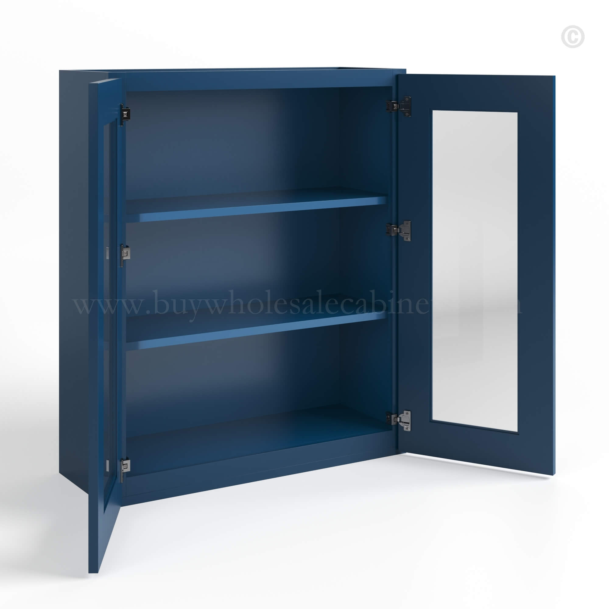 Buy Wholesale Cabinets Navy Blue Shaker 36″ H Double Door Wall Cabinet with Glass Doors is available in 2 sizes.