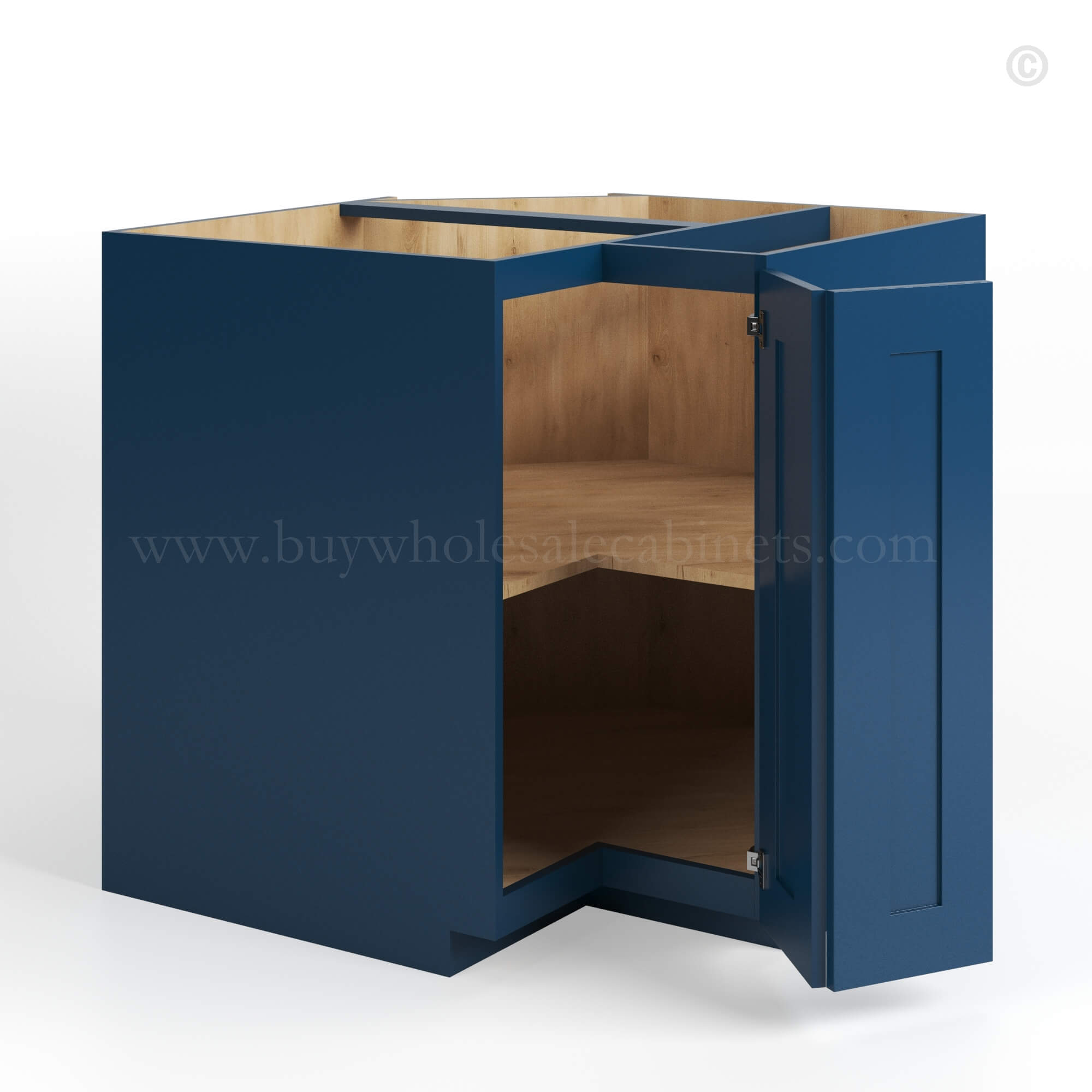Navy Blue Shaker Corner Sink Base Cabinet with False Drawer