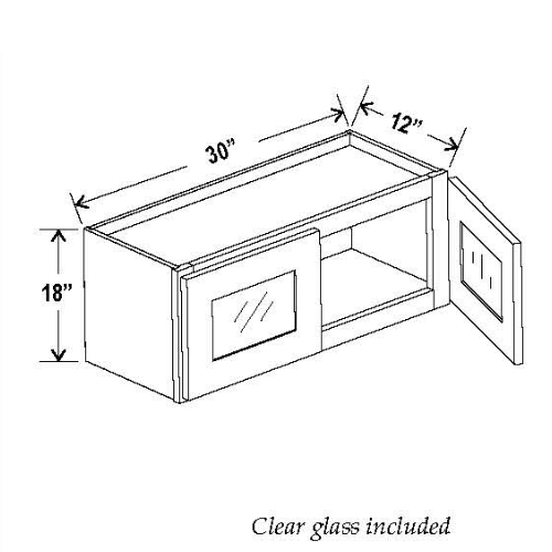 Our Shaker Espresso 18 H Double Door Wall Cabinet with Glass Doors is 30″ wide, 18″ tall, and 12″ deep.