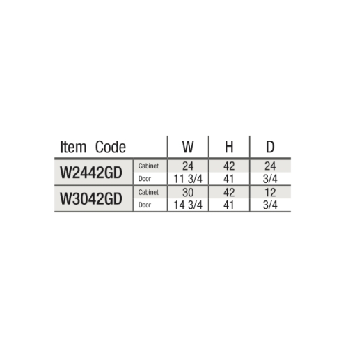 Cabinet Dimensions: 24″W x 42″H x 12″D, 30″W x 42″H x 12″D