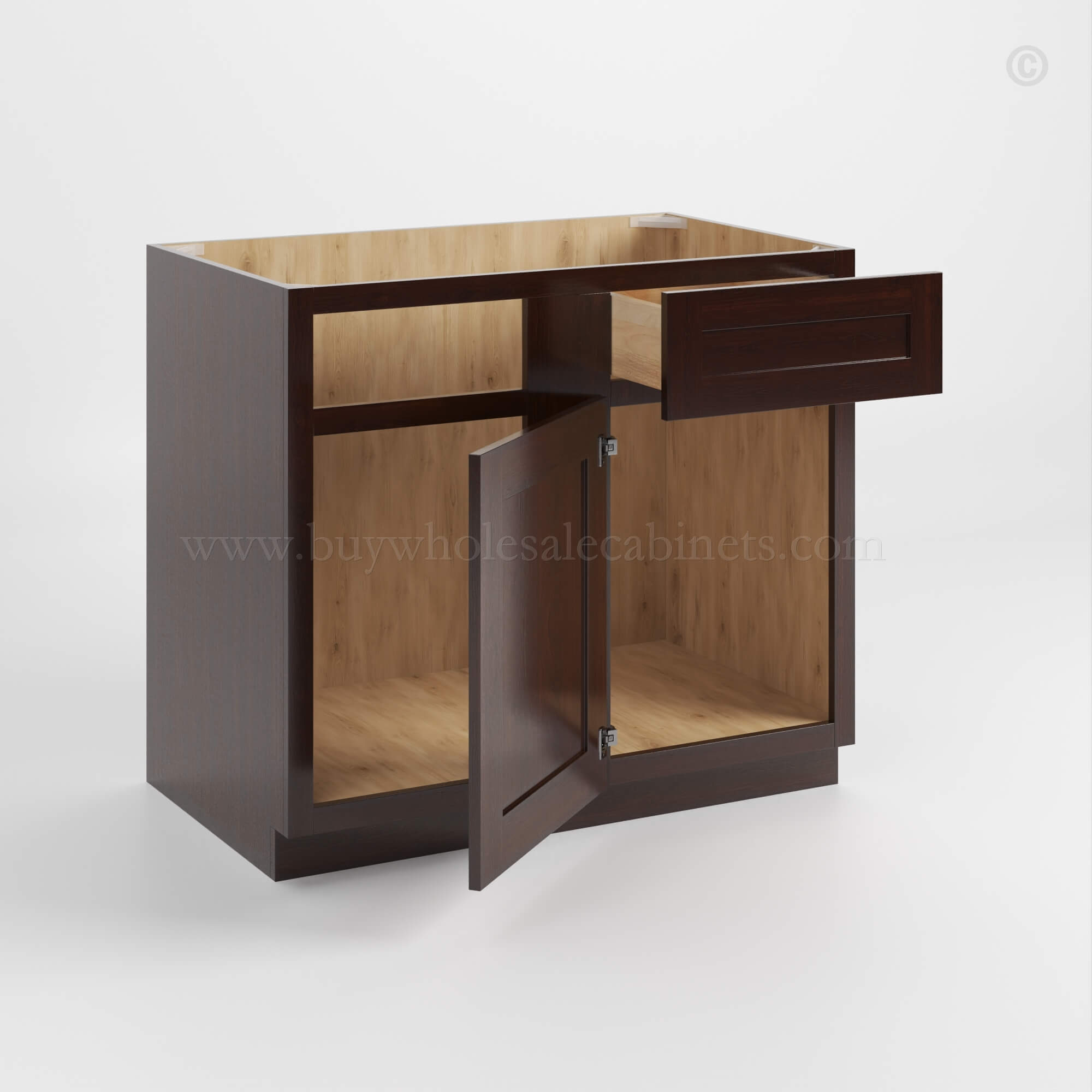 Our Shaker Espresso Blind Corner Base Cabinet is available in 2 sizes.