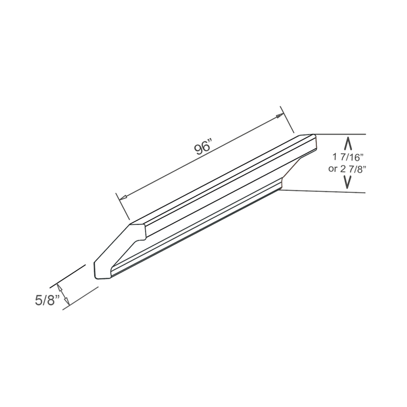 96"W x 1-7/16"H x 1-7/16"D ,96"W x 2-7/8"H x 2-7/8"D |