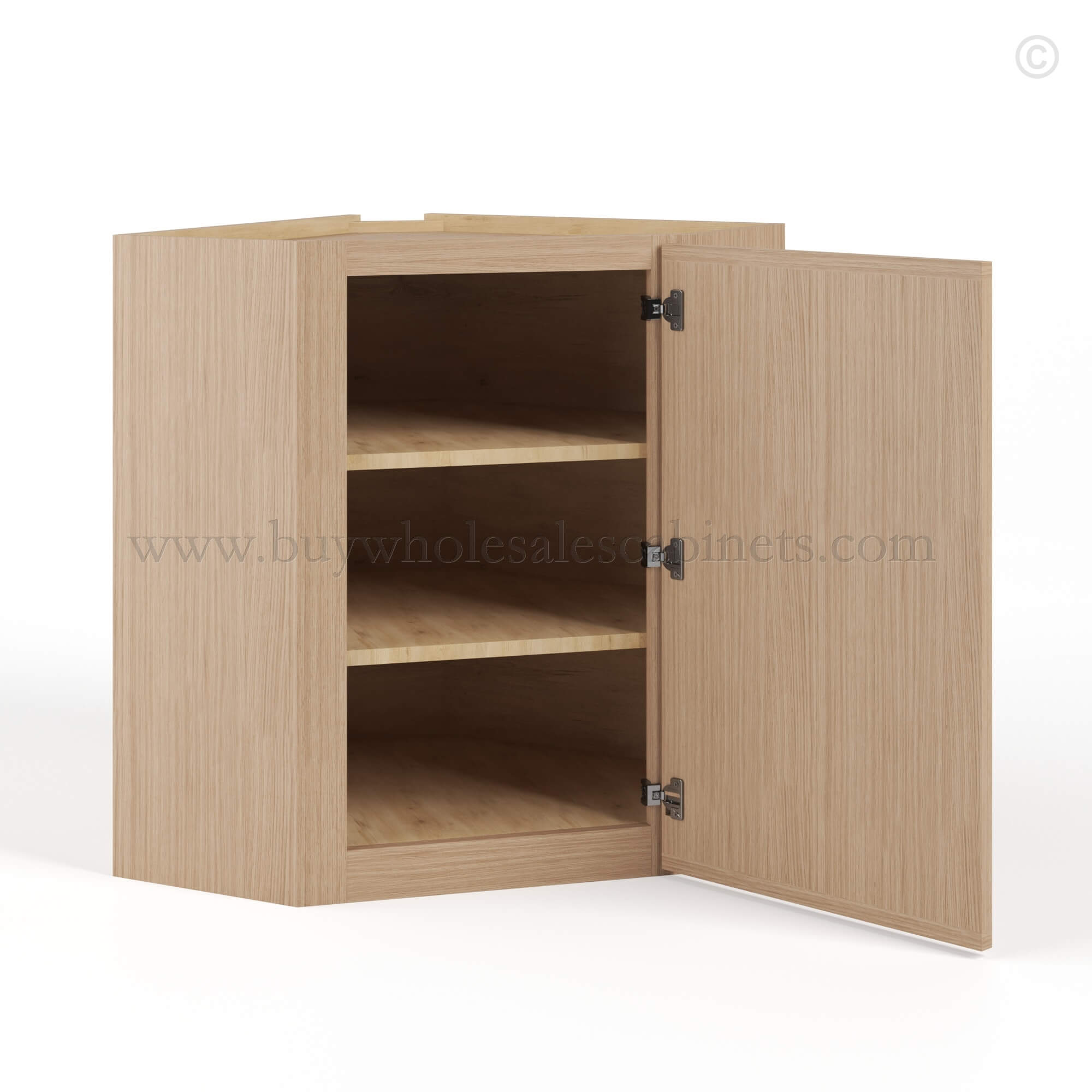 Buy Wholesale Cabinets Slim Oak Shaker Cabinets Line is crafted with meticulous attention to detail, this Slim Oak Shaker Diagonal Corner Wall Cabinet boasts a top-grade “A” plywood cabinet box for exceptional durability and sturdiness. Buy Wholesale Cabinets cabinets feature European soft-close hinges and glides, ensuring smooth and quiet operation every time.