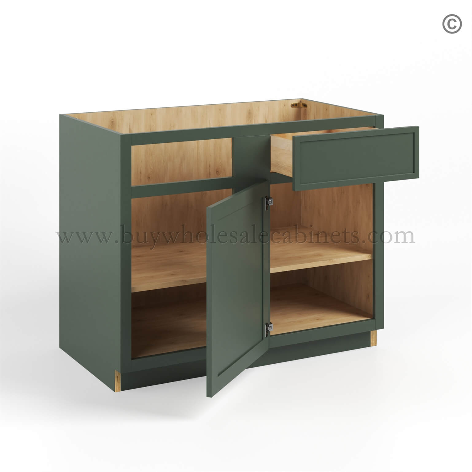 Slim Shaker Green Base Cabinet Double Door & Single Drawer