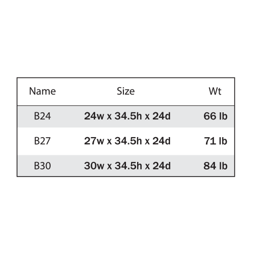 24"W x 24"D x 34 1/2"H ,27"W x 24"D x 34 1/2"H ,30"W x 24"D x 34 1/2"H |