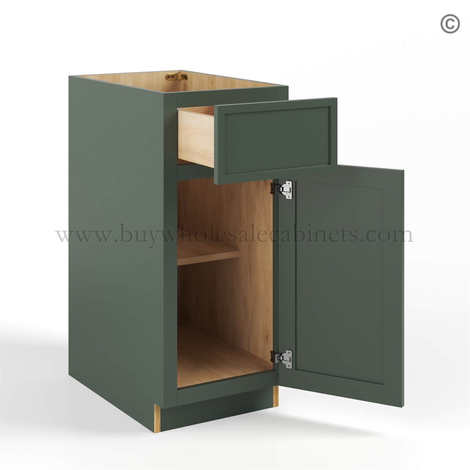 Slim Shaker Green Base Cabinet Single Door Single Drawer
