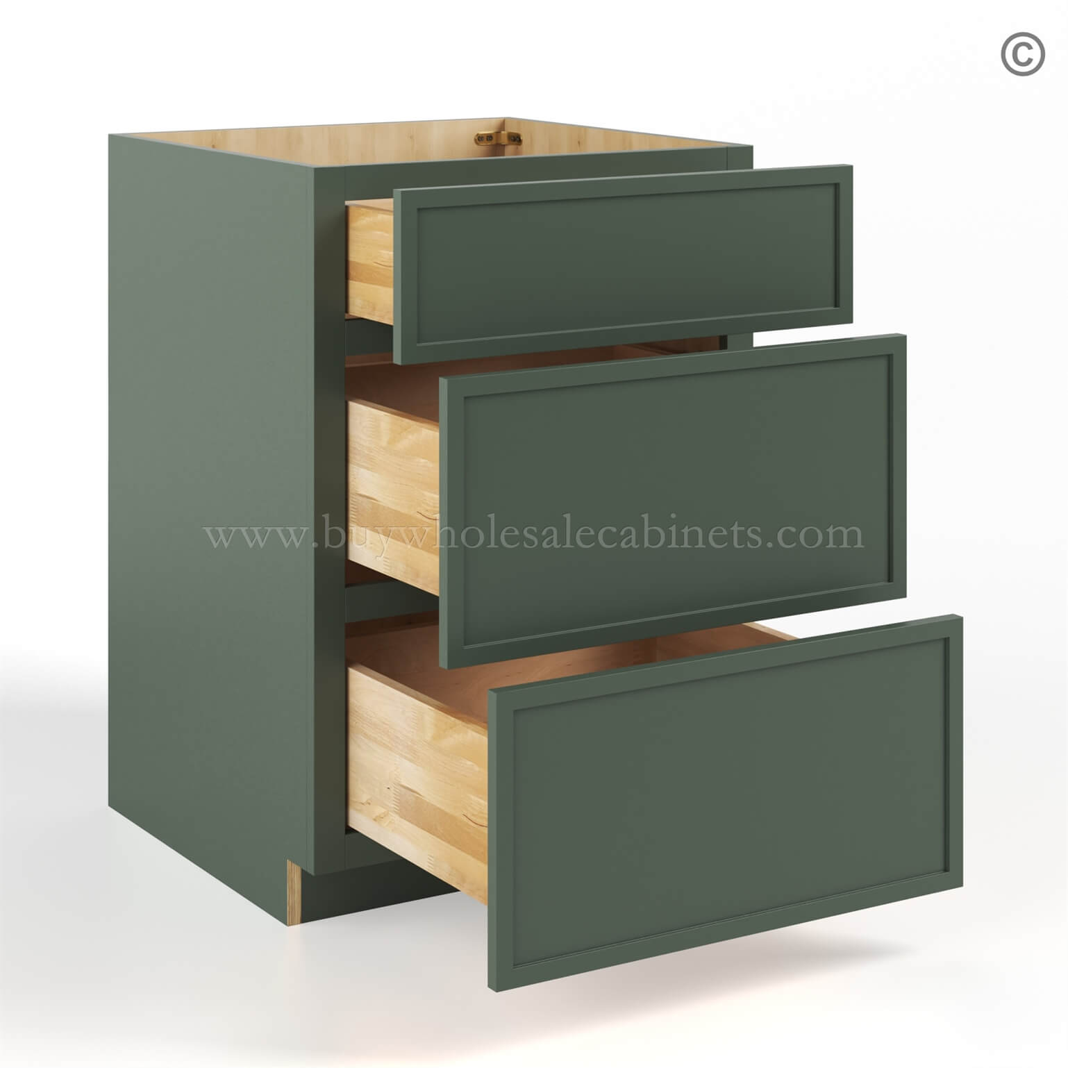 Slim Shaker Green Base Cabinet with 3 Drawers