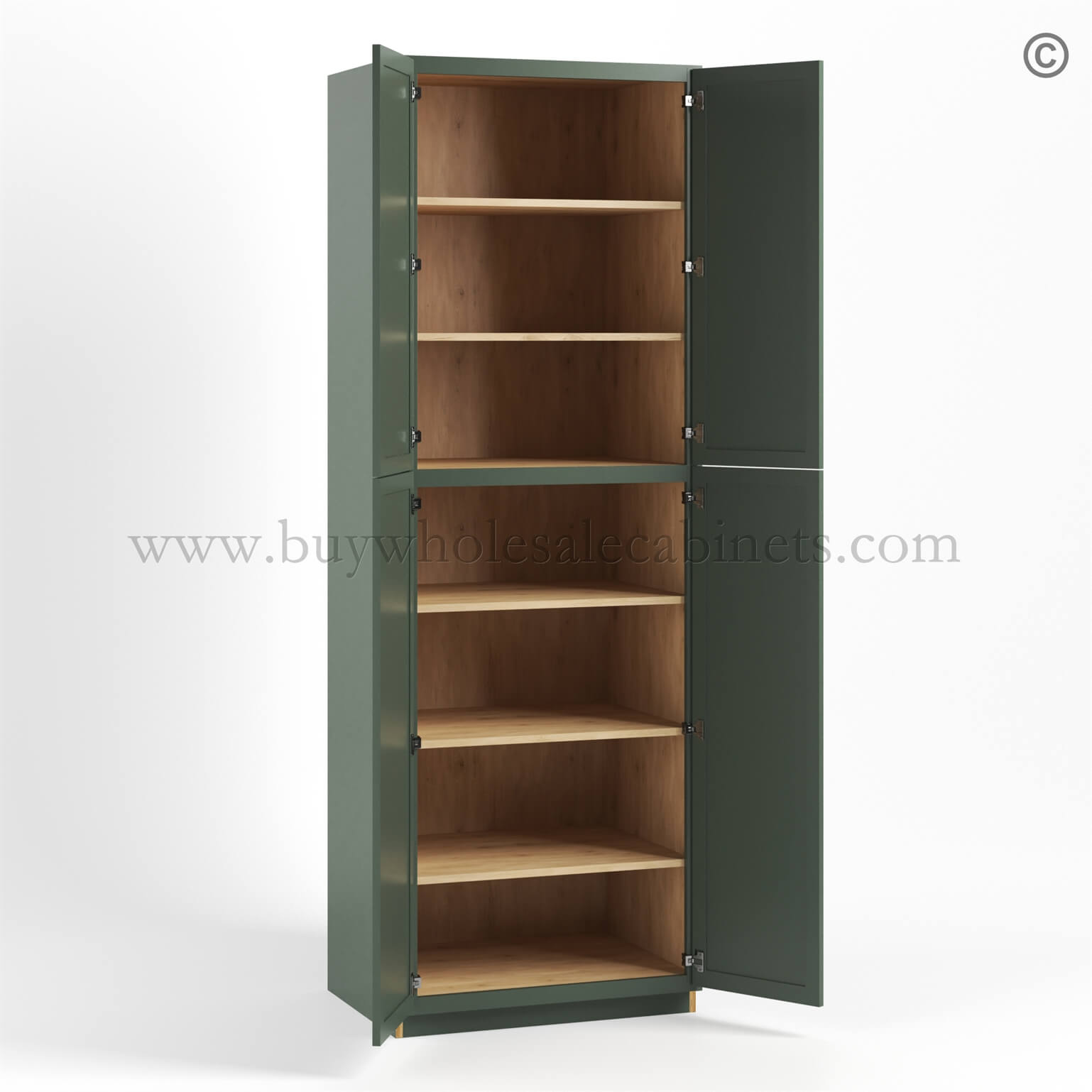 Slim Shaker Green Tall Pantry Cabinet 4 Doors