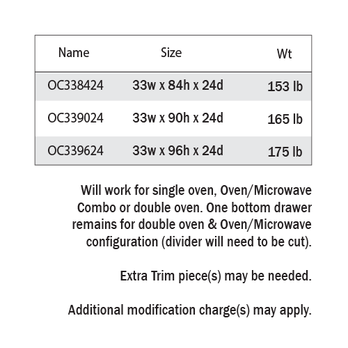 33"W x 24"D x 84"H ,33"W x 24"D x 90"H ,33"W x 24"D x 96"H |