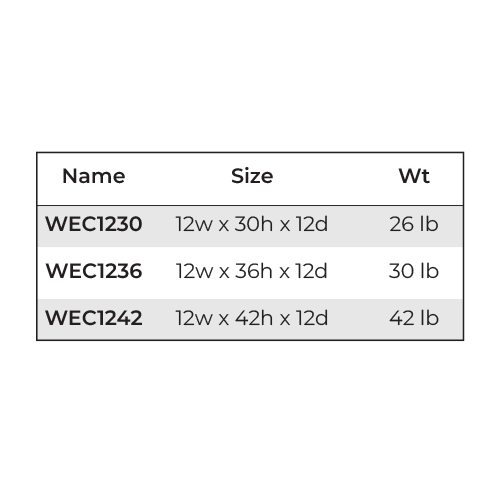 12"W x 12"D x 30"H ,12"W x 12"D x 36"H ,12"W x 12"D x 42"H |