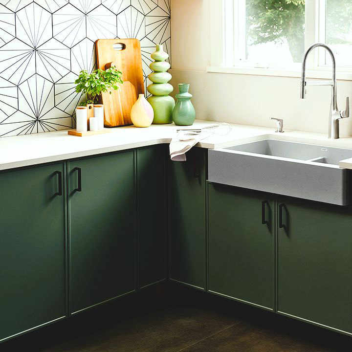 RTA Slim Shaker Green cabinets are built to last and will elevate any kitchen or bathroom to a modern look/feel.