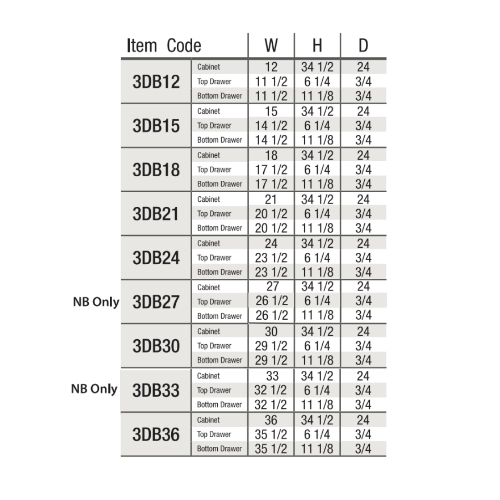 12"W x 34-1/2"H x 24"D ,15"W x 34-1/2"H x 24"D ,18"W x 34-1/2"H x 24"D ,21"W x 34-1/2"H x 24"D ,24"W x 34-1/2"H x 24"D ,27"W x 34-1/2"H x 24"D ,30"W x 34-1/2"H x 24"D ,33"W x 34-1/2"H x 24"D ,36"W x 34-1/2"H x 24"D |