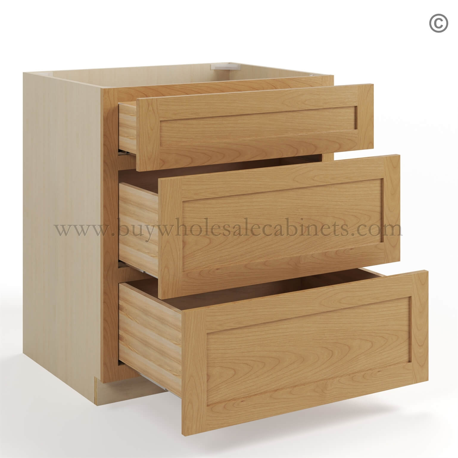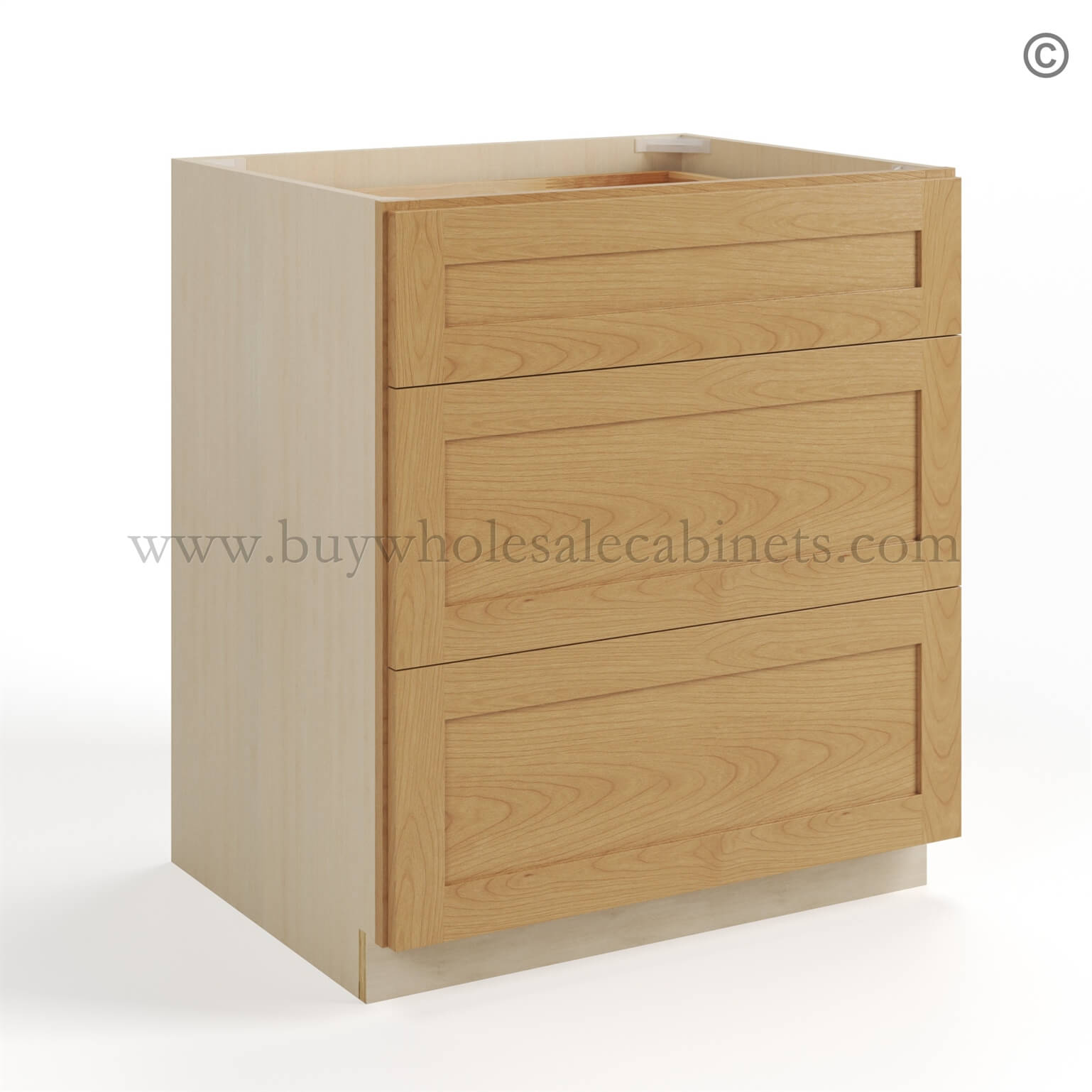 Buy Wholesale Cabinets Treasure Chest Shaker Three Drawer Base is available in 9 sizes.