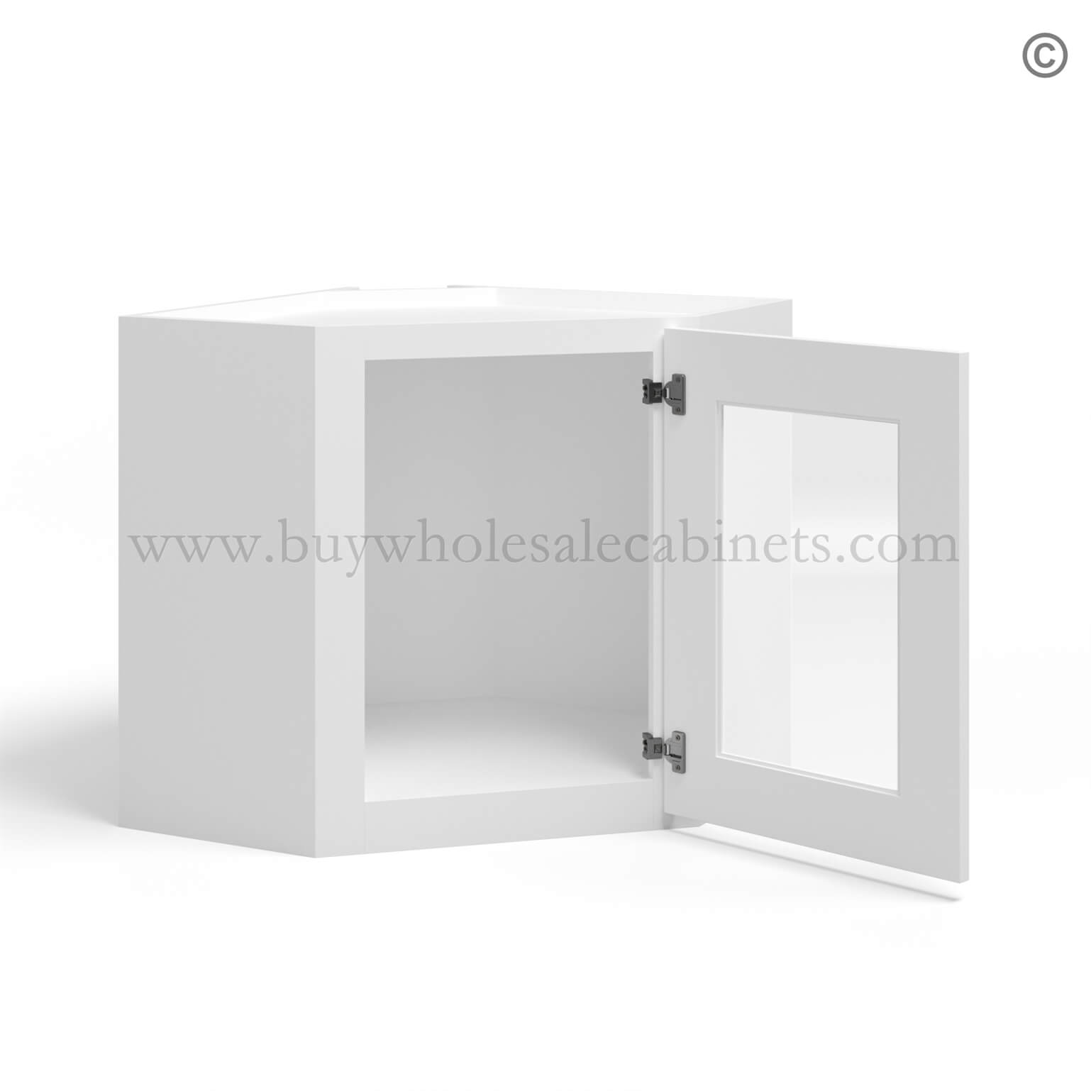 White Shaker 12 x 24 Diagonal Corner Wall Cabinet with Glass Door