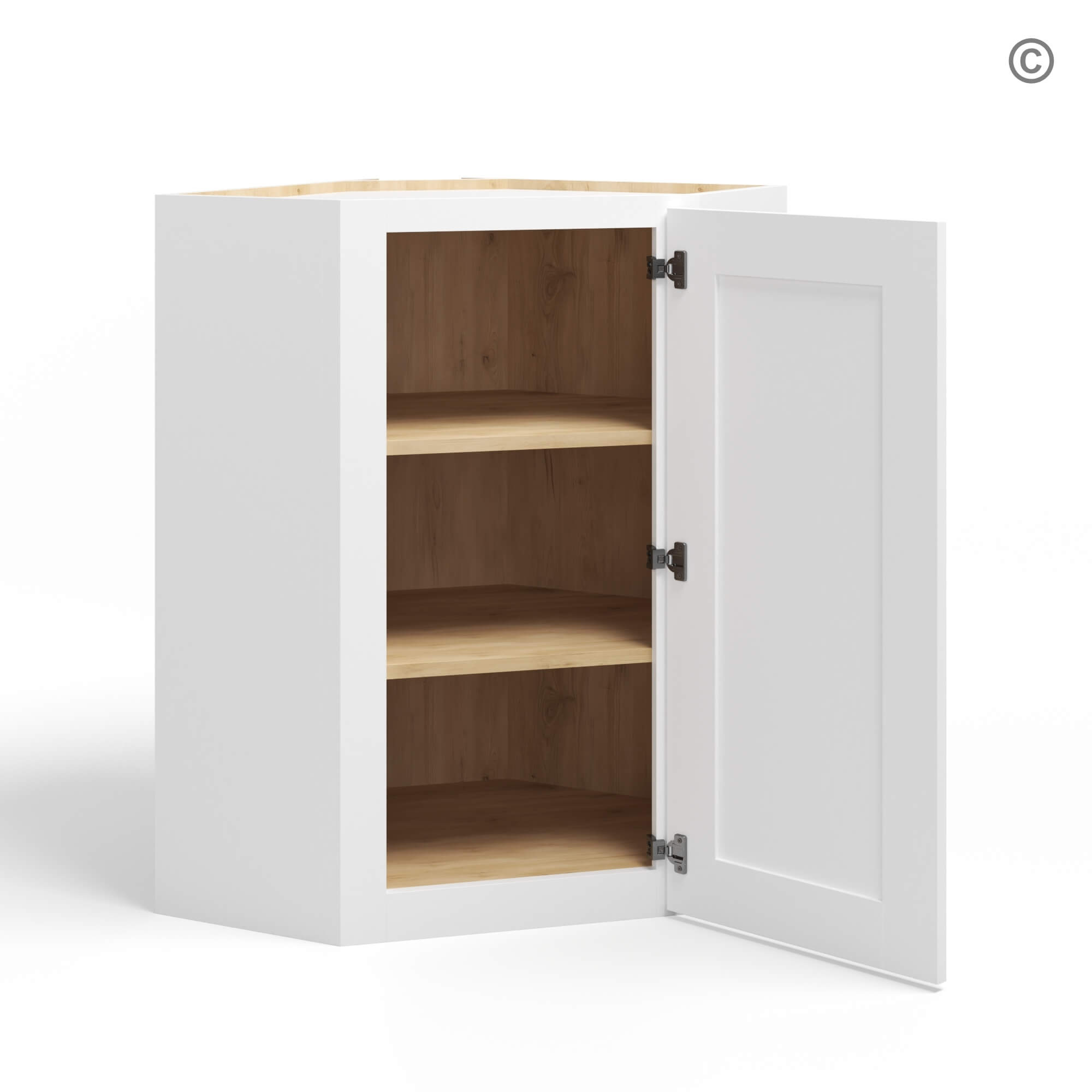 Our 24″ White Shaker Diagonal Corner Wall Cabinet is available in 3 sizes.
