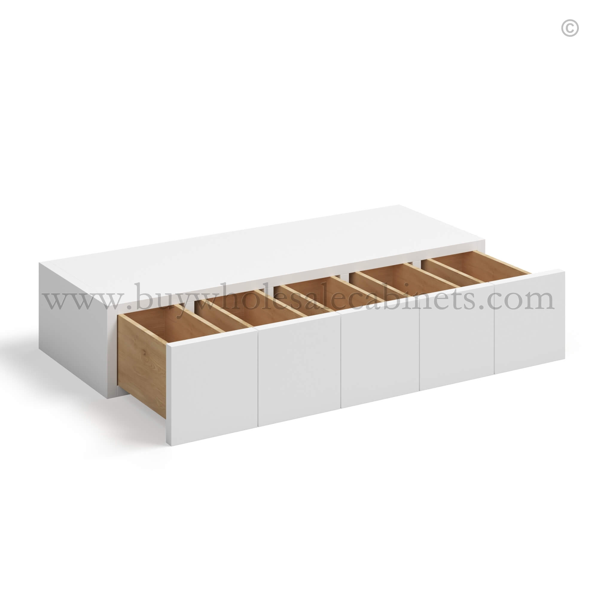 Hardware: 5-drawer configuration with wood-on-wood drawer glides. No metal glides or soft-close hardware included.