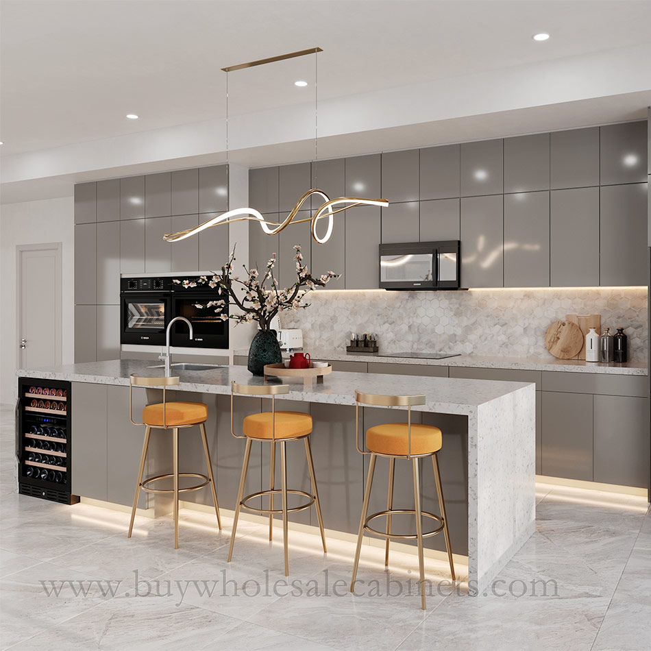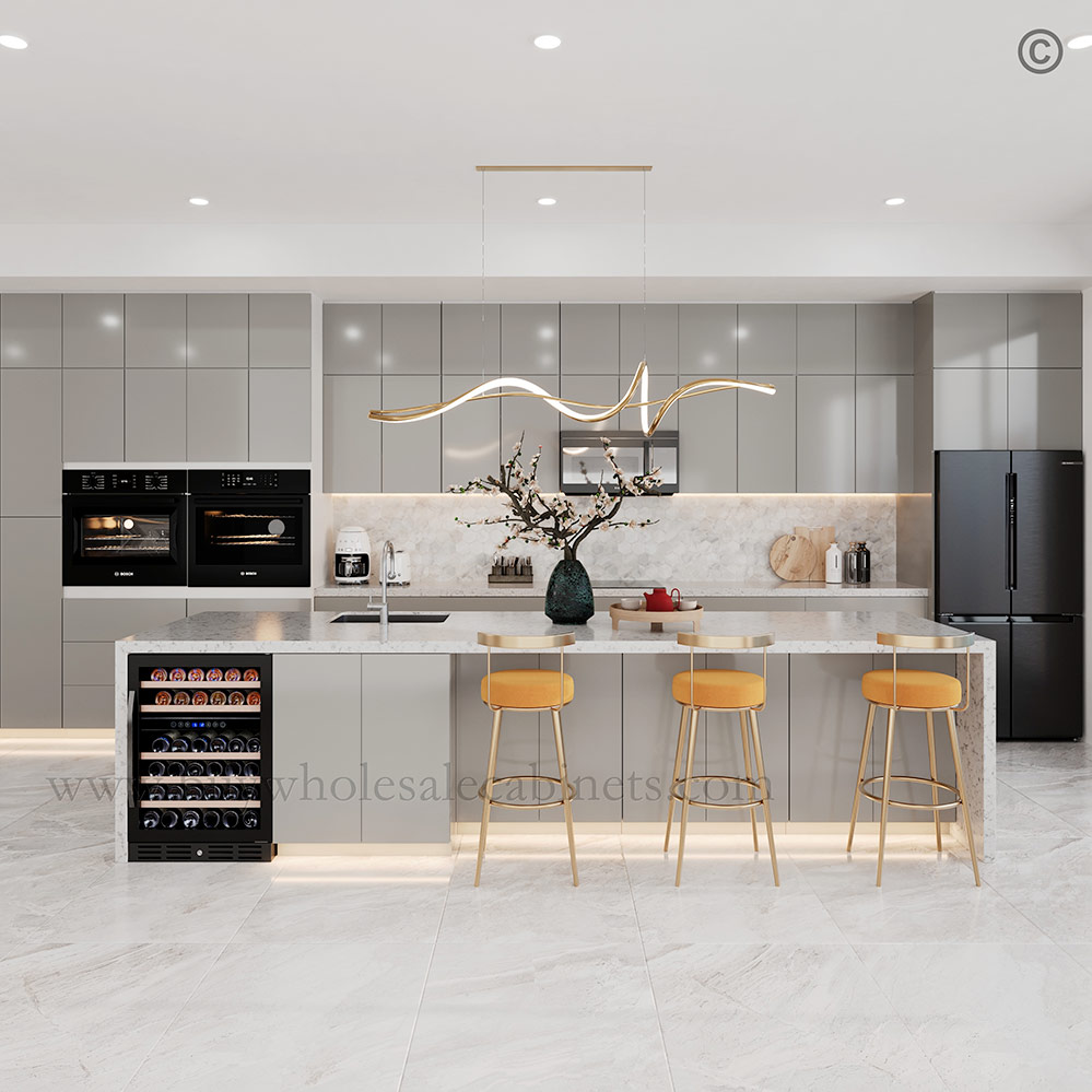 Give your kitchen a sleek, contemporary look with our premium frameless high gloss gray cabinets. Designed to deliver modern elegance, our cabinets offer smooth, reflective surfaces and seamless construction. You get an impressive combination of both aesthetics and functionality.