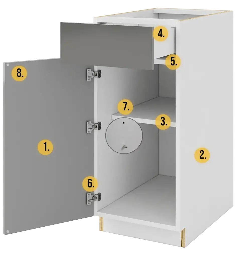 3/4" thick cabinet grade plywood cabinet box covered with white melamine