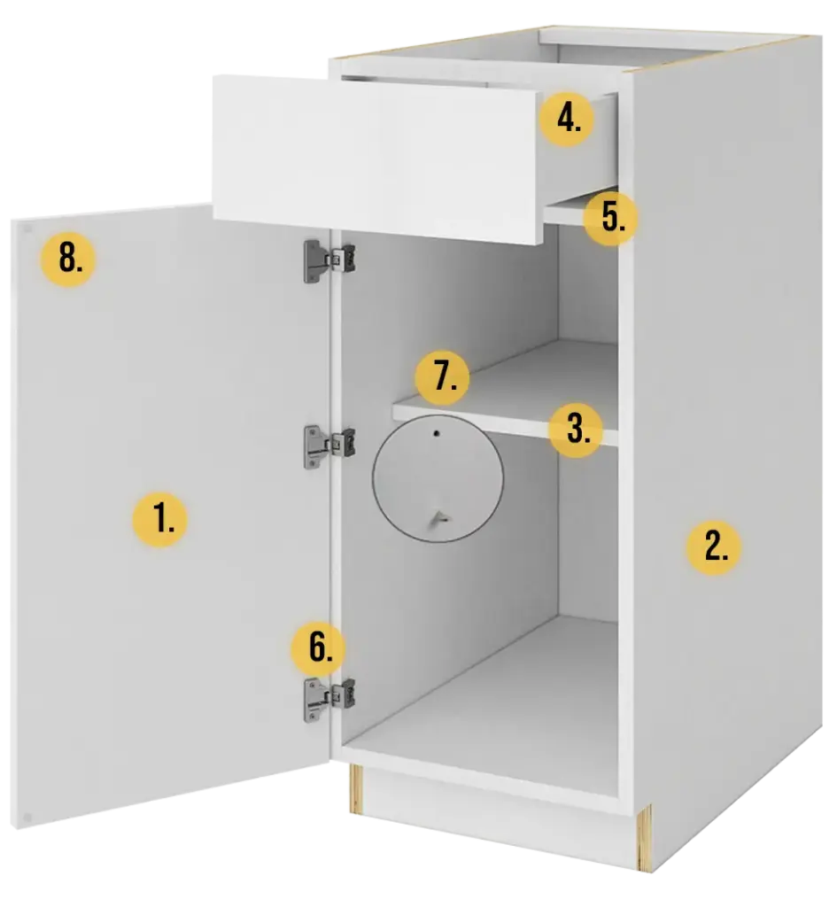 Frameless Gloss White Base Cabinet Single Door and Drawer