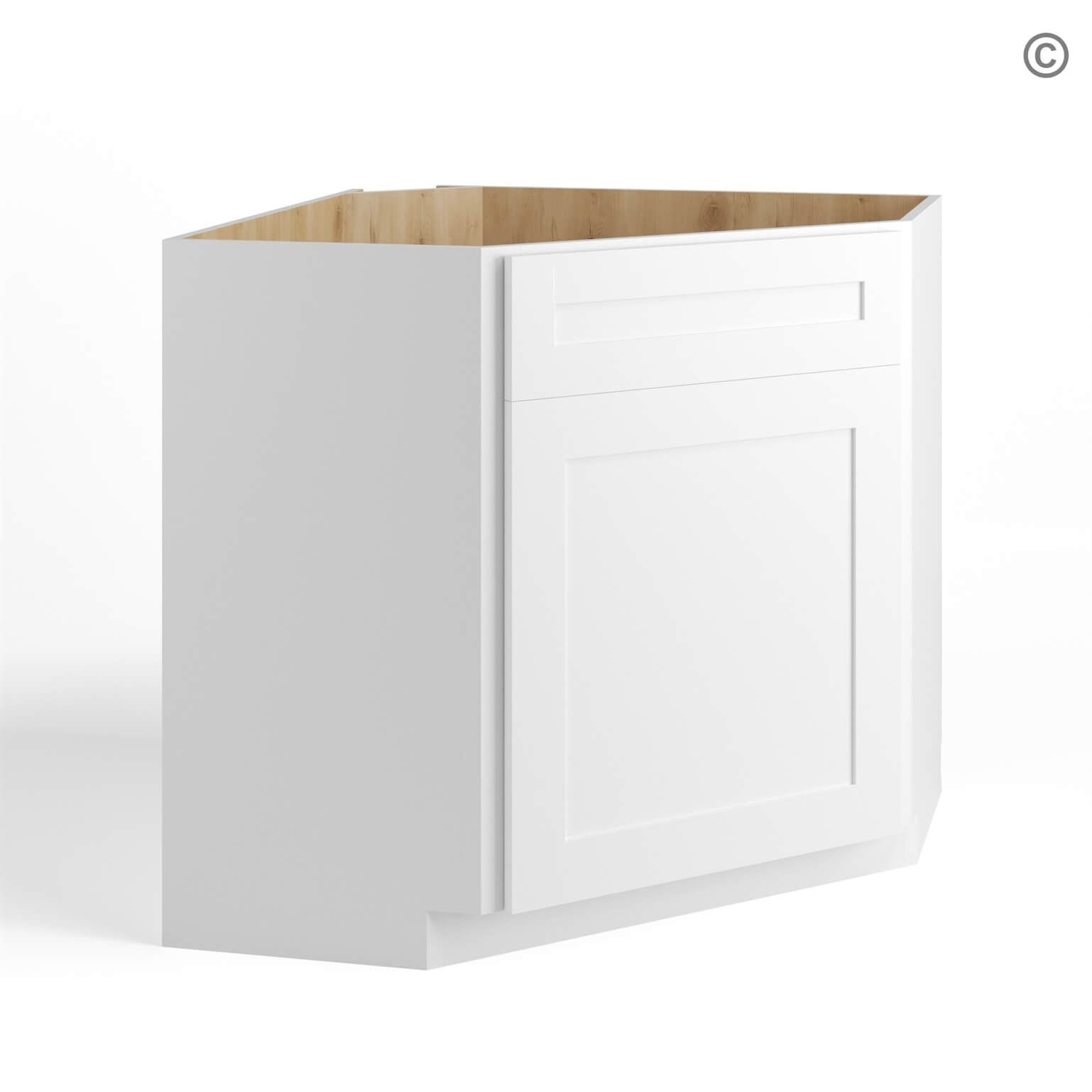 White Shaker Corner Sink Base Cabinet with False Drawer