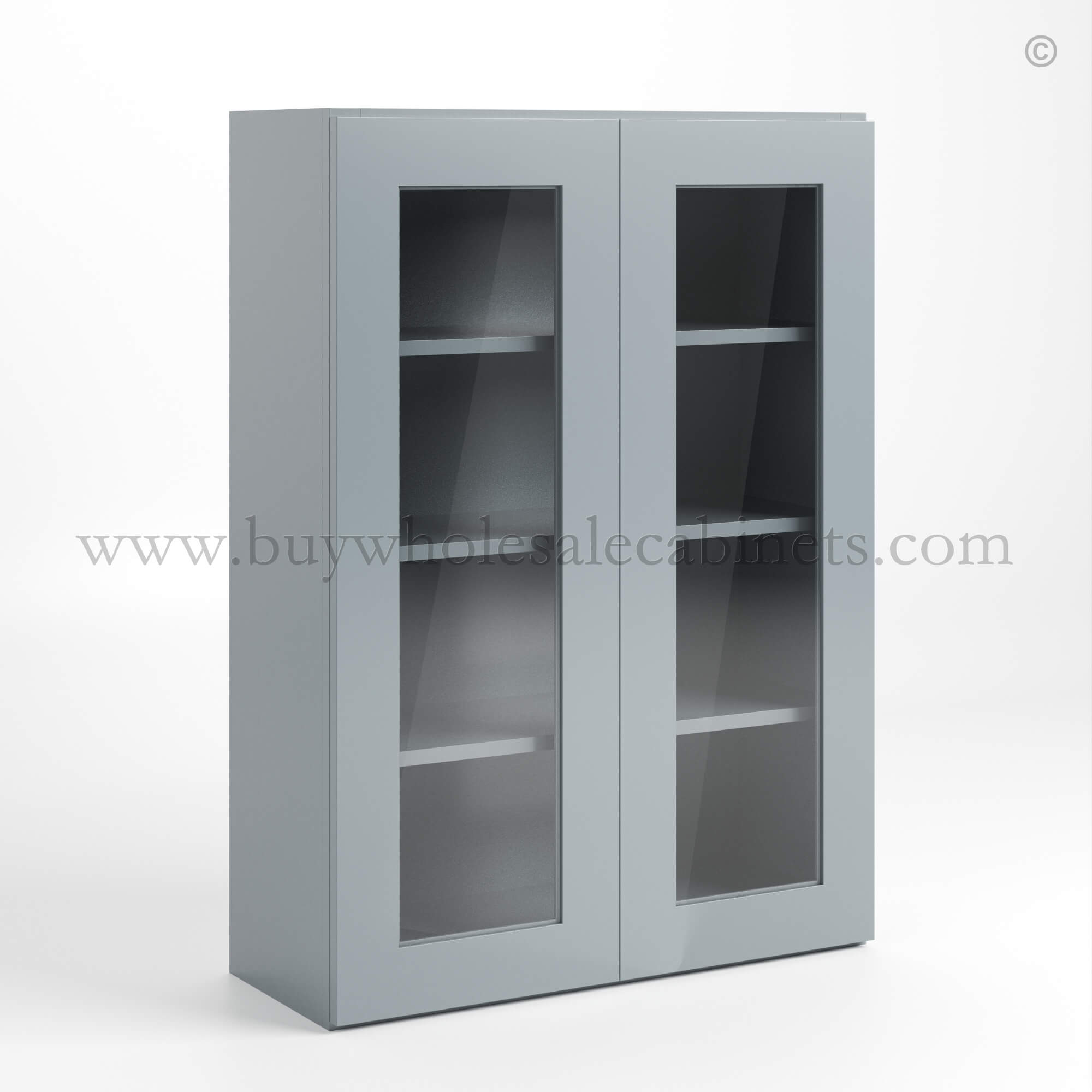 Gray Shaker 42″ H Double Door Wall Cabinet with Glass Doors
