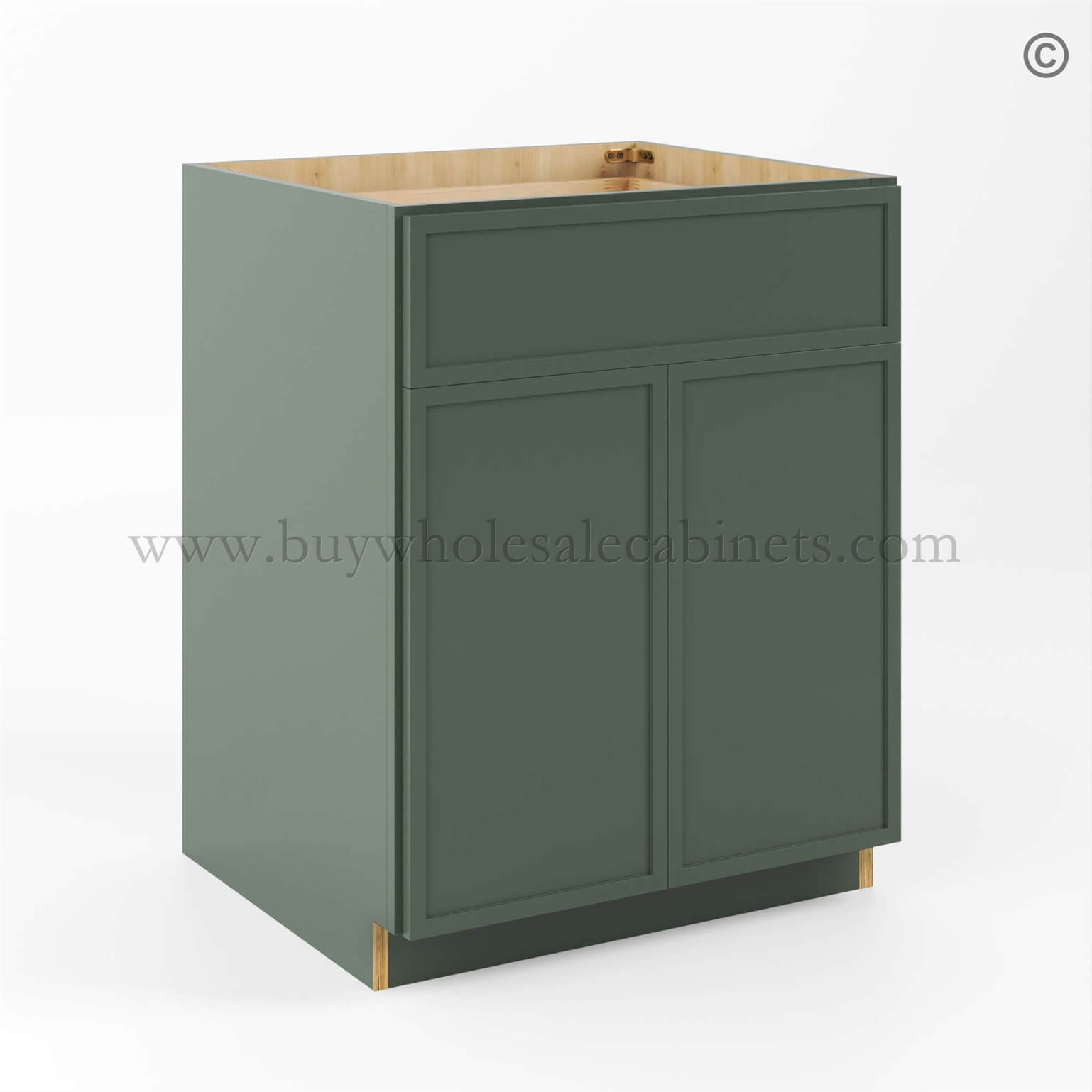 Slim Shaker Green Sink Base Double Door and Double False Drawer
